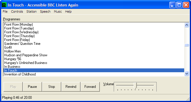 BBC Listen Again lets you hear any BBC Radio programme from the last week, simply listing them by station or topic, letting you go through the list and press a key to hear any station.