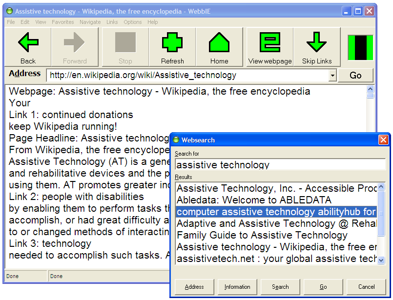 Here are some pictures of the free WebbIE and the Accessible programs in action: